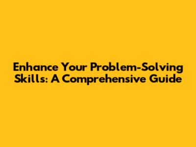 Enhance Your Problem-Solving Skills: A Comprehensive Guide